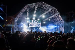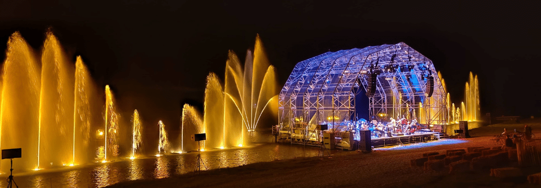 Notre scène emblématique est en matériel Layher France. Elle est conçue pour être complètement modulable pour s’adapter aux besoins techniques, artistiques et aux contraintes du terrain.