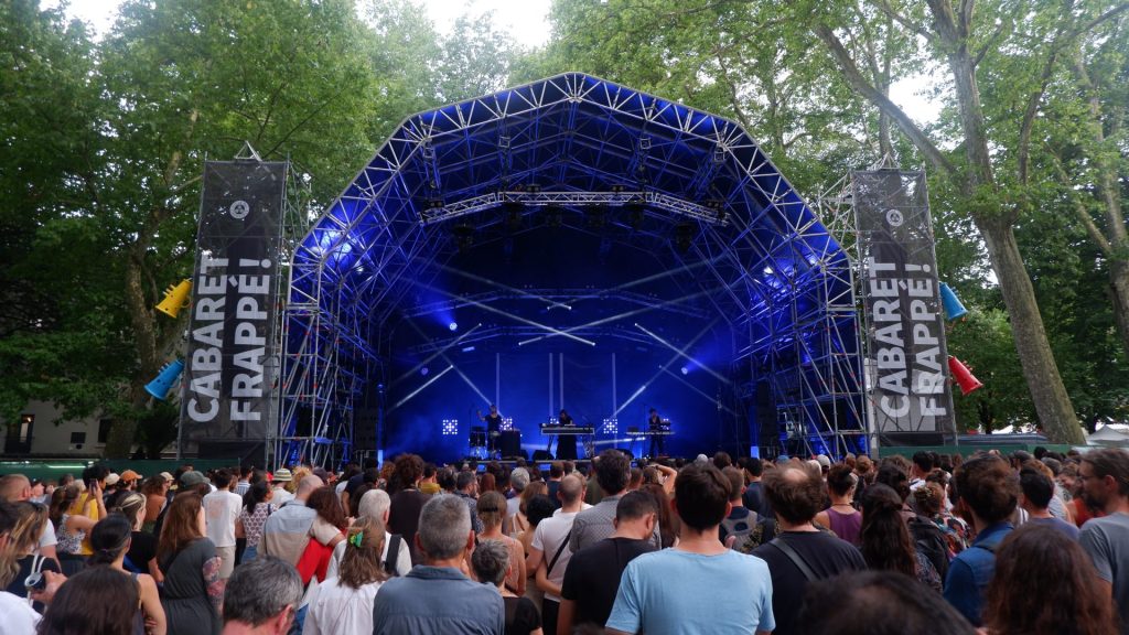 Organisé depuis plus de 24 ans par la Ville de Grenoble, le Cabaret Frappé se démarque des nombreux festivals d’été par son lieu et sa dimension 100% gratuite, permettant au greneblois.es de profiter pleinement de l’événement. En plein centre-ville de Grenoble, le Jardin de Ville donne au Cabaret Frappé ces couleurs si particulières marquées à la fois par la convivialité et l’intimité du lieu. Le Festival est ainsi devenu depuis plusieurs années un rendez-vous estival attendu autant par des publics venus partager un afterwork que par des publics plus avertis.